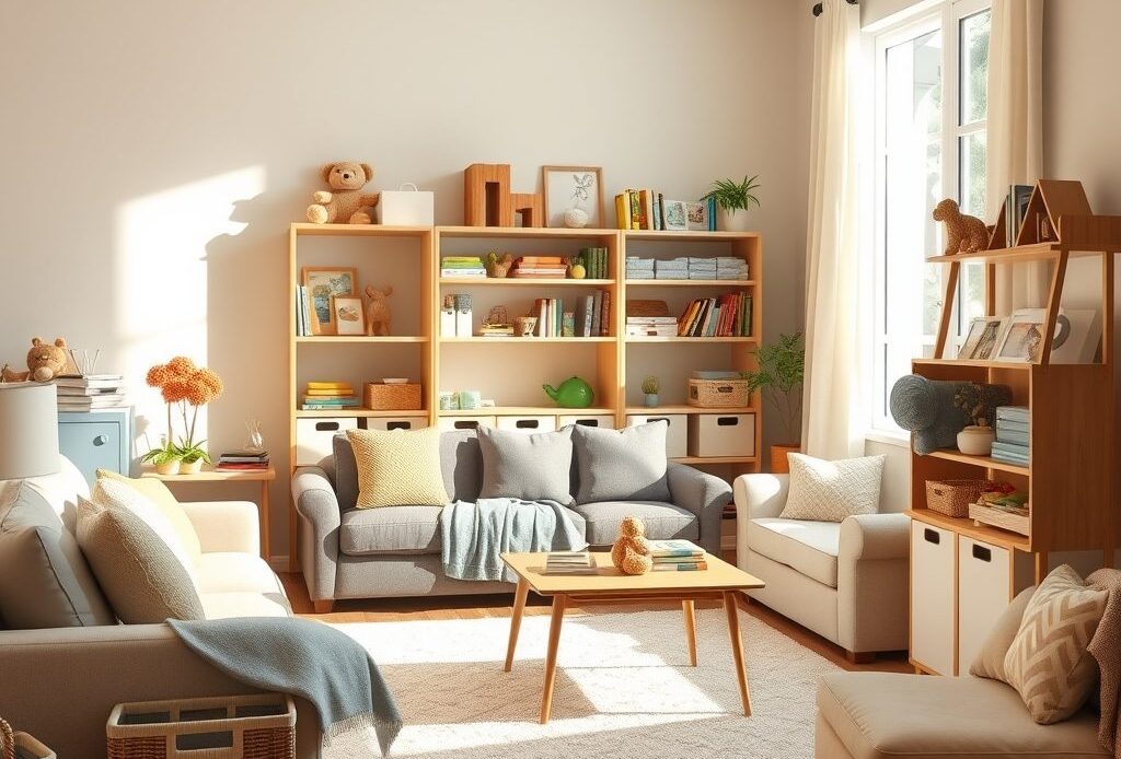 Organizacja miejsca na zabawki i dziecięce akcesoria w salonie